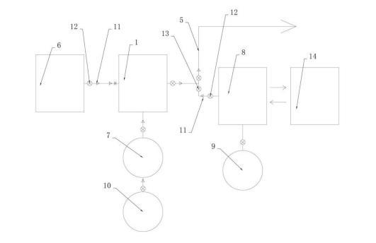 本發(fā)明的一種基于微納米氣泡的井口注氣裝置在使用時,微納米氣泡在油層流動過程中,可以改變油水界面張力,降低原油的粘度,增大油藏的滲透率,從而提高油水的相對滲透率,進而提高原油的采收率;而加藥泵能夠?qū)ψ⑺⑷胨幰海瑥亩纳谱⑺艿馈⒂蜌馓餇顩r,提高采油率;同時第二旋風分離器能夠?qū)⒊叽巛^大的微納米氣泡分離出去,從而保證注入井下的微納米氣泡的尺寸,進而確保驅(qū)油效果,提升采油率。