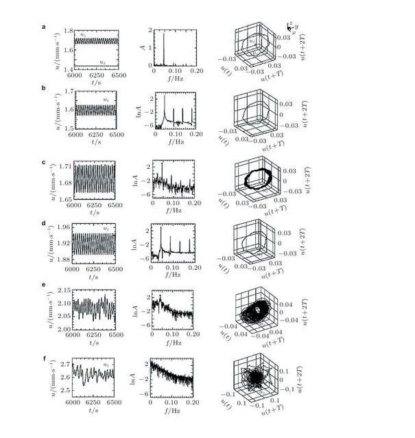 (4)目前對于液層界面張力梯度驅動對流向湍流轉捩的研究仍不夠完善,在對超臨界轉捩階段的實驗及數值模擬研究中觀察到了許多復雜的轉捩模式,但大多只是現象上的描述,并未總結出普遍的規律;對于流動最終能否通向混沌暫無普適的判據,流動通向混沌過程中出現的諸如陣發、鎖頻等特殊的現象也尚未有更本質的機理上的解釋。總之,對于轉捩規律的深入理解,需要界面張力梯度驅動對流這一非線性模型在理論上的進一步發展,未來道阻且長。