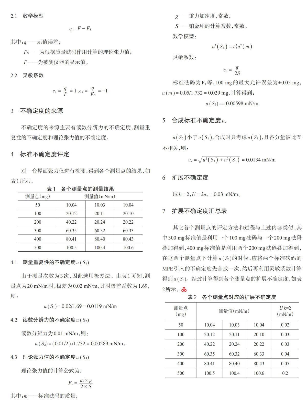 不確定度的來源主要有讀數(shù)分辨力的不確定度、測量重復(fù)性的不確定度和理論張力值的不確定度。
