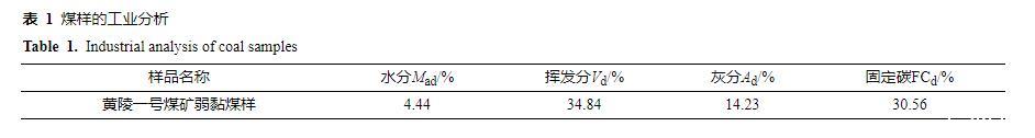 將EMI原液稀釋至質(zhì)量分?jǐn)?shù)分別為0.1%、0.2%、0.4%、0.6%、0.8%、1.0%、2.0%、4.0%、6.0%、8.0%的混合溶液。實(shí)驗(yàn)煤樣選取黃陵一號(hào)煤礦弱黏煤樣,煤樣工業(yè)分析結(jié)果見表1。在制備煤塵樣品時(shí),根據(jù)有關(guān)文獻(xiàn)對(duì)黃陵一號(hào)煤礦綜采工作面煤塵粒徑分布進(jìn)行檢測(cè),并結(jié)合國際標(biāo)準(zhǔn)化組織對(duì)粉塵粒徑的定義,以及實(shí)驗(yàn)室制備條件,去除煤塊外表皮,使用破碎機(jī)對(duì)煤心破碎60 s,用160、200、300、400目標(biāo)準(zhǔn)工業(yè)篩對(duì)煤粉進(jìn)行篩分,共篩分出0.075~0.096、0.048~<0.075、0.038~<0.048、<0.038 mm共4個(gè)粒度范圍的樣品進(jìn)行實(shí)驗(yàn),其中煤塵粒徑與煤樣編號(hào)見表2。煤樣制備完成后,將其放入80℃的真空干燥箱,真空干燥8 h后密封保存以備實(shí)驗(yàn)使用。
