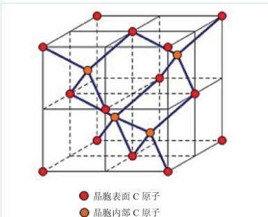 金剛石是由碳原子構(gòu)成的復(fù)式晶格結(jié)構(gòu),如圖12所示。金剛石這種特殊結(jié)構(gòu)決定其具有獨(dú)特的光學(xué)性能。金剛石透光范圍寬,具備紫外~可見~遠(yuǎn)紅外波段的穿透性,從紫外(0.22μm)到遠(yuǎn)紅外(40——1000μm),除4μm——6μm位置上存在微小本征吸收峰(吸收系數(shù)為12.3 cm?1)之外,不存在其他吸收峰。