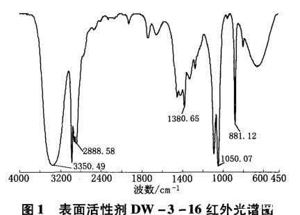 G511型立式攪拌器;真空泵;電熱恒溫水浴鍋;Perkin-Elmer 1700型FT-IR光譜儀,美國Perkin Elmer公司;KQ-C玻璃儀器氣流烘干器;TX-500型旋滴界面張力儀。