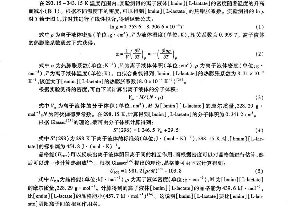 根據實驗測得的密度,可由下試計算出離子液體的分子體積: