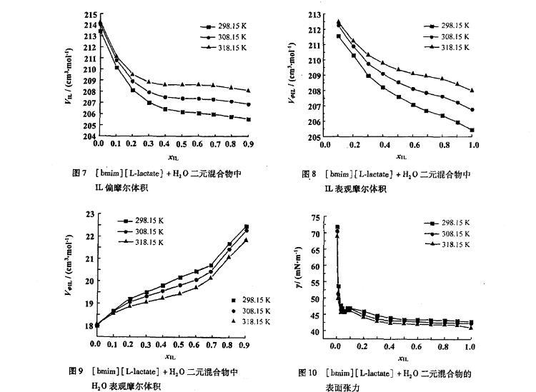 圖8[bmim][L-lactate]+H2 O二元混合物中IL表觀摩爾體積
