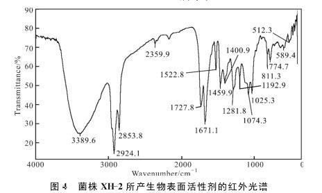 菌株XH-2所產生物表面活性劑的紅外光譜如圖4所示。