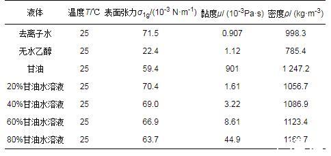 目前文獻中關于各類因素對液滴鋪展線速度和鋪展面積的影響,以及撞擊過程中液滴的表面能、動能和黏性耗散的變化的研究較少,因此本文采用實驗的方法研究了液滴的物性和操作條件對其撞擊固體表面過程中的鋪展直徑、鋪展速度和鋪展面積的影響,并結合能量法對表面能、動能和黏性耗散在撞擊過程中的變化進行分析,以揭示液滴撞擊固體表面過程的特點。
