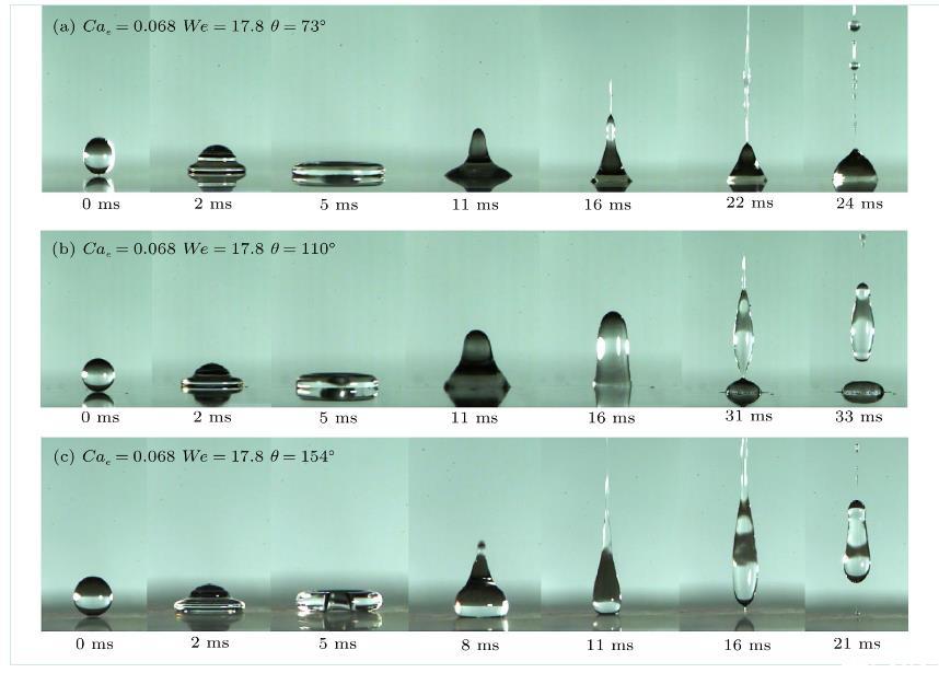 圖9液滴撞擊親水、疏水以及超疏水表面的過程圖