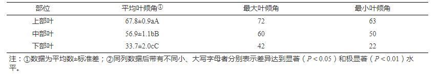 葉傾角對霧滴沉積的作用強于葉面結(jié)構(gòu),在噴施農(nóng)藥時應優(yōu)先考慮。表1表明,成熟期煙株上部葉傾角大多集中在60°~70°之間;中部葉傾角居中,集中在50°~60°之間;下部葉傾角較小,集中在20°~40°之間。