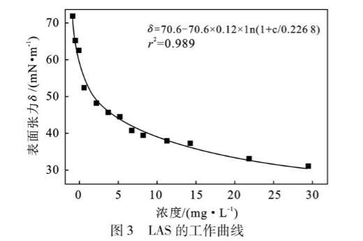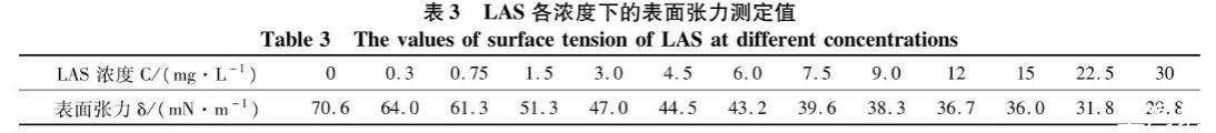 表3 LAS各濃度下的表面張力測(cè)定值