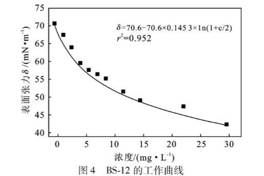 表4 BS-12各濃度下的表面張力測(cè)定值