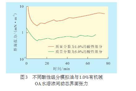 2.3有機堿OA水溶液與酸性組分模擬油間動態(tài)界面張力