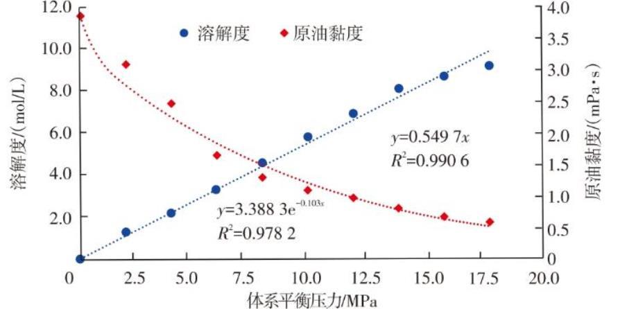 圖1原油黏度/溶解度與體系平衡壓力的關系