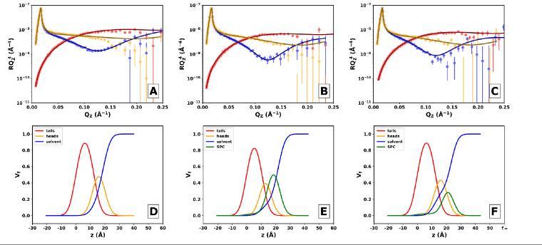 自發(fā)現(xiàn)以來,破譯呼吸氣液界面處肺表面活性劑(PS)的分子結(jié)構(gòu)一直是一項(xiàng)重大挑戰(zhàn)。這在呼氣結(jié)束時(shí)的最小肺容積和表面積下尤為重要,此時(shí)PS會迅速重組為3D膜網(wǎng)絡(luò)而不會與界面膜分離,從而確保后續(xù)呼吸周期的準(zhǔn)備和穩(wěn)定性。研究人員利用中子反射法和落射熒光顯微鏡在專門設(shè)計(jì)的表面天平中,研究了模型PS膜和薄膜在不同壓縮階段的結(jié)構(gòu),重點(diǎn)關(guān)注疏水表面活性劑蛋白SP-B和SP-C在界面系統(tǒng)組織中的關(guān)鍵作用。所研究的模型表面活性劑薄膜的結(jié)構(gòu)(均與界面平面正交和橫向分析)在很大程度上取決于成分。闡明了SP-B和SP-C的不同作用,揭示了只有SP-B(表面活性劑中唯一對生命不可或缺的蛋白質(zhì))在界面下方的3D膜庫成核。