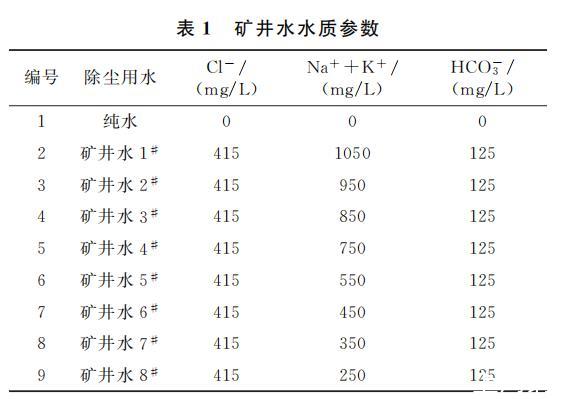 根據(jù)調(diào)研結(jié)果配制9組溶液,包括8組Na+、K+離子濃度不同的礦井水和1組純水,溶液配比見(jiàn)表1。配制溶液時(shí),取適量去離子水,向其中投加CaCl2、MgCl2、Ca(HCO3)2 控制礦井水硬度,向其中投加NaCl、HCl和NaOH控制礦井水的pH為7.5,向水溶液添加其他必需微量離子和雜質(zhì),靜置2 h待用。