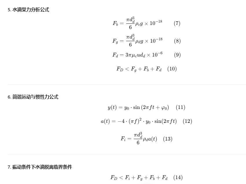 當水滴所受的重力、浮力、曳力之和大于纖維的最大粘附力時,如公式(10)所示,水滴從纖維上脫離。