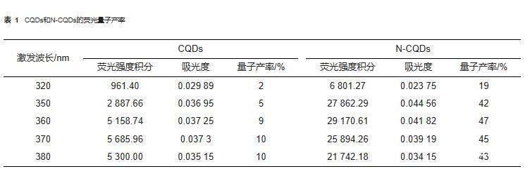 表1 CQDs和N-CQDs的熒光量子產(chǎn)率