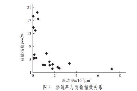 圖2 滲透率與賈敏指數(shù)(pdw/pdo)關(guān)系圖