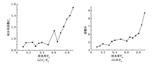 圖6 相分布因數 C o 指數 N 隨持水率 Y w 的變化