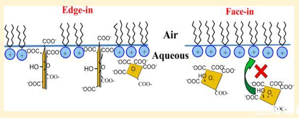 氧化石墨烯 (GO) 已證明 在生物醫(yī)學(xué)領(lǐng)域的各種有前途的應(yīng)用。 但 關(guān)于 GO 如何與細胞膜相互作用的信息或 模型系統(tǒng)仍然極其有限。 也是未知數(shù) GO 在與脂質(zhì)相互作用時會自我定向。 在這項研究中, Langmuir 單層技術(shù)應(yīng)用于空氣- 研究水/水界面的性質(zhì)和方向 GO 和脂質(zhì)模型之間的相互作用。 五脂 (DODAB、DSEPC、DSPC、DSPA 和 SA)具有相同的 18-碳烷基鏈但不同的電荷頭基被有意選擇以使可能的相互作用合理化。 實驗結(jié)果表明,這種相互作用是由極性頭部基團和 GO 之間的靜電相互作用控制的。 GO 可以摻入帶正電荷的脂質(zhì) DODAB 和 DSEPC 的單層,但不能摻入中性或負(fù)電荷的脂質(zhì) 帶電脂質(zhì)(DSPC、DSPA 和 SA)。 當(dāng) GO 被注入到帶正電荷的單層下面的亞相中時 脂質(zhì) DODAB 和 DSEPC,觀察到不同的表面壓力行為。 “edge-in”而不是“edge-in”的方向模型 提出了“face-in”來解釋GO對DODAB單層的吸附。