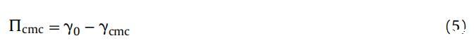 其中γ o 和γ cmc 是指溶劑體系的表面張力 (水/水 + Hb) 和 cmc 值下溶液的表面張力。