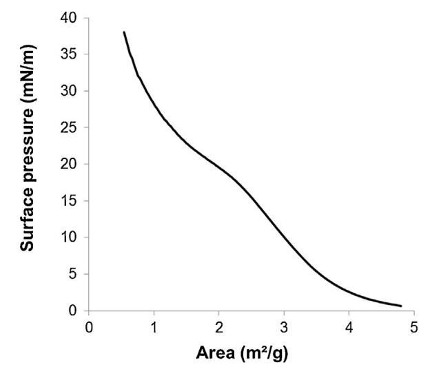 圖3。通過傳播精漿在空氣/緩沖液界面形成的單層的表面壓力面積(π–A)等溫線(n=3,標準偏差在0-18.9 mN/m范圍內不超過1.5 mN/m,在18.9-38 mN/m范圍內不超過1.2 mN/m)。