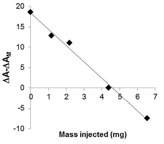 圖6。相對面積隨注射到亞相的脂質體質量的變化。線性回歸的R2為0.992。