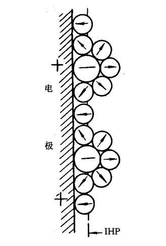 我們知道在溶液中電極表面是吸附了一層極性水分子的。就是緊密層第一層定向排列的水分子偶極層。所謂的表面活性物質只有脫去其外部的水化膜,并且擠掉吸附在電極表面的水分子,才有可能與電極表面發生短程作用而聚集在界面,也就是成為表面活性物質。比如在前面說緊密層結構時候的陰離子。