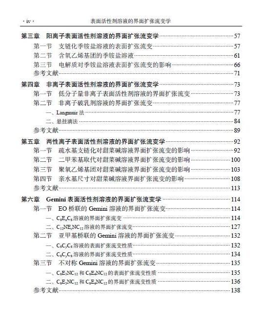 流體界面擴(kuò)張流變學(xué)還處于快速發(fā)展之中,因此本書主要介紹其方法和應(yīng)用實(shí)例,構(gòu)架復(fù)雜的新型研究手段與應(yīng)用之間的橋梁,讓具有基礎(chǔ)化學(xué)知識的讀者掌握界面擴(kuò)張流變研究手段。本書以表面活性劑溶液的界面擴(kuò)張流變學(xué)研究為核心,全面介紹界面擴(kuò)張流變學(xué)的基礎(chǔ)知識,分類描述不同類型表面活性劑在空氣-水和油-水界面的擴(kuò)張流變性質(zhì);重點(diǎn)闡釋通過界面擴(kuò)張流變學(xué)研究手段獲得流體界面吸附分子相互作用及微觀行為的方式。在本書寫作上,避免煩瑣的數(shù)學(xué)推導(dǎo)和理論描述,以界面擴(kuò)張流變方法的物理化學(xué)意義和儀器應(yīng)用為重點(diǎn),強(qiáng)調(diào)可操作性。