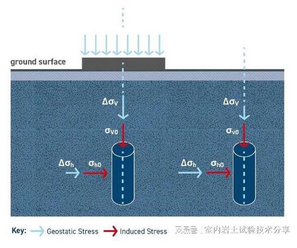 淺層地基和開挖相結合引起的不同應力條件的例子。