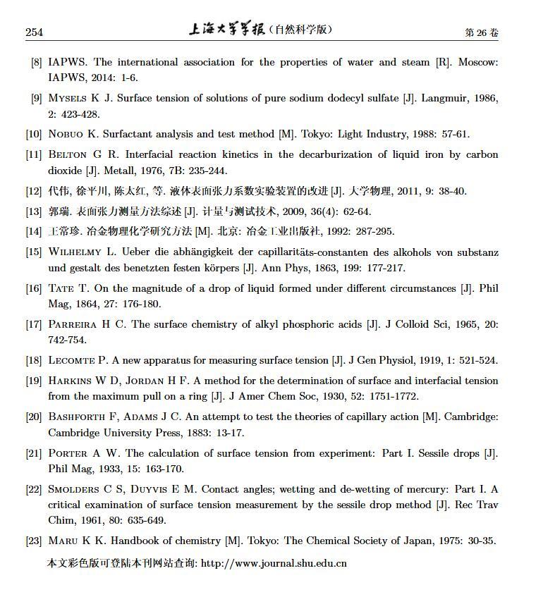 > 一套低溫、高壓懸滴法表面張力實驗測量系統實踐效果(二)