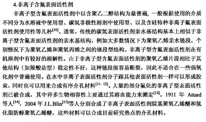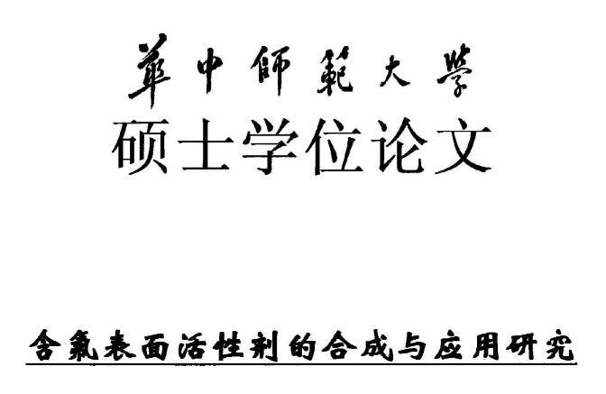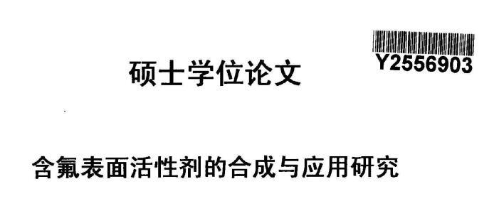 【摘要】:本論文首先對新型含氟表面活性劑的特性,應用領域,國內外研究進展進行了全面的綜述。含氟表面活性劑是目前最受青睞的特種表面活性劑,相比于傳統的碳氫表面活性劑,含氟表面活性劑的用量少,降低水溶液表面張力的作用強,同時可以跟其它表面活性劑起到很好的復配效果,可以應用于消防、鉻霧抑制劑、造紙、冶金、起泡與消泡劑的合成等很多領域。