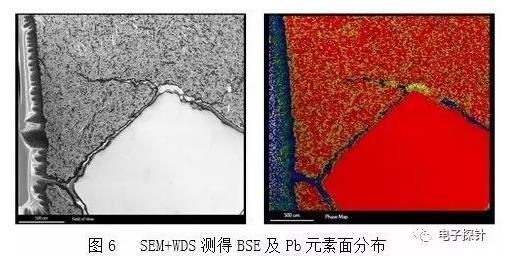 圖6為某廠商生產(chǎn)的SEM+WDS測試結(jié)果。其測試的大小范圍受限,還不到EPMA測試區(qū)域的一半,(EPMA可以使用樣品臺掃描,實(shí)現(xiàn)更大區(qū)域的分析)也就不能查看整個負(fù)極板上待測元素的分布結(jié)果。由于S元素的含量很低,測試沒有給出結(jié)果。