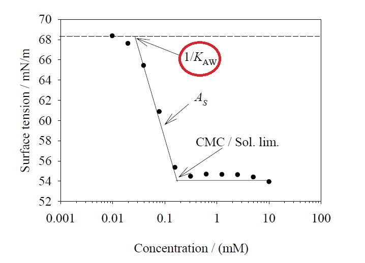 Kaw代表了化合物在界面的親和力。Kaw值越高疏水性越高。化合物缺乏或只有幾個功能基團時被動擴散能夠與氫鍵在界面吸附。親脂性化合物可以保留在細胞膜中。